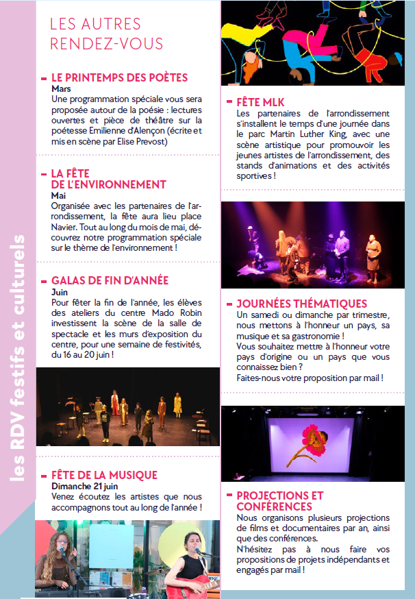 Le Centre Mado Robin, c’est aussi une programmation culturelle riche, pluridisciplinaire et éclectique.
