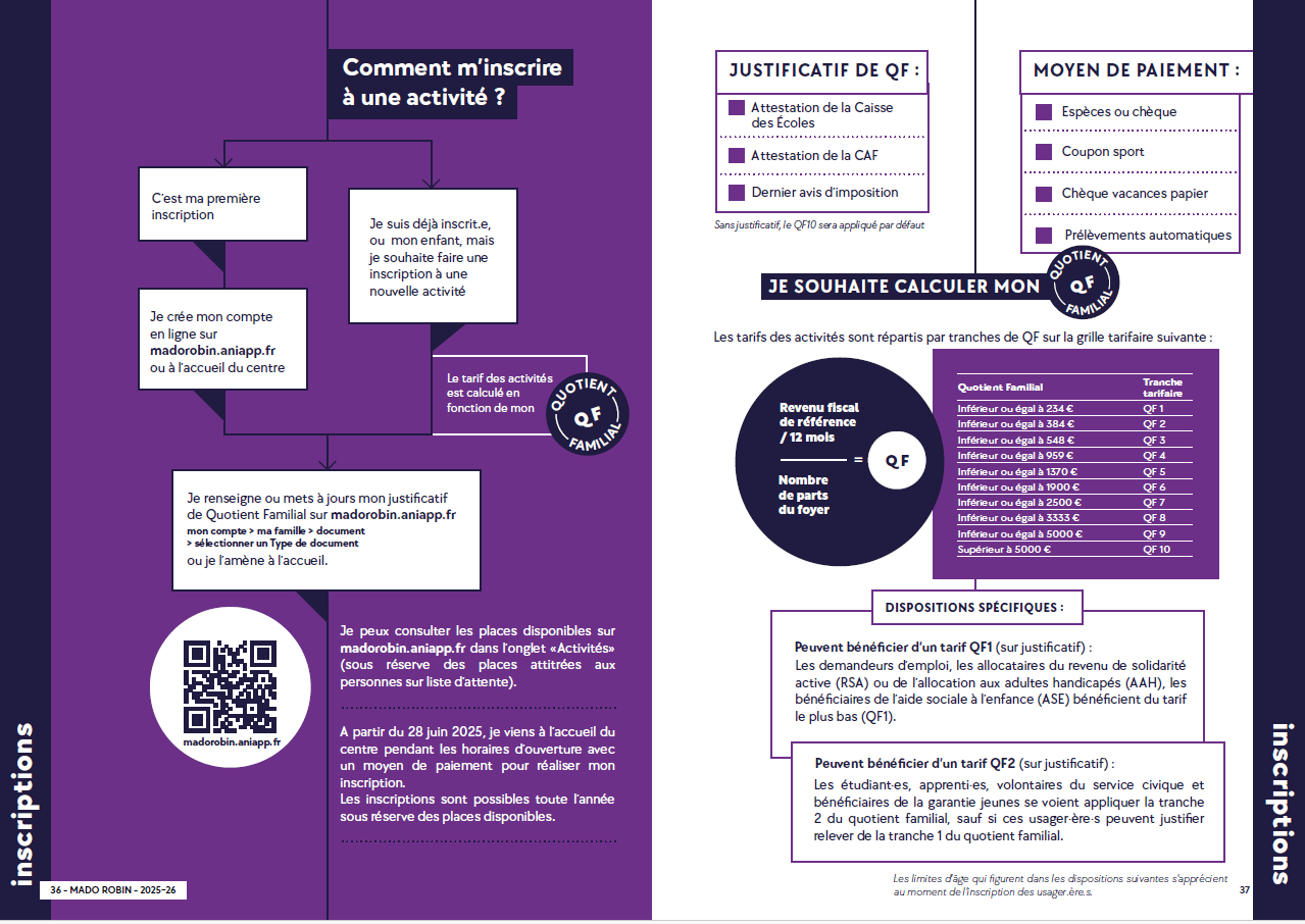 - Je me présente au centre pour valider mon inscription et mon Quotient Familial.
